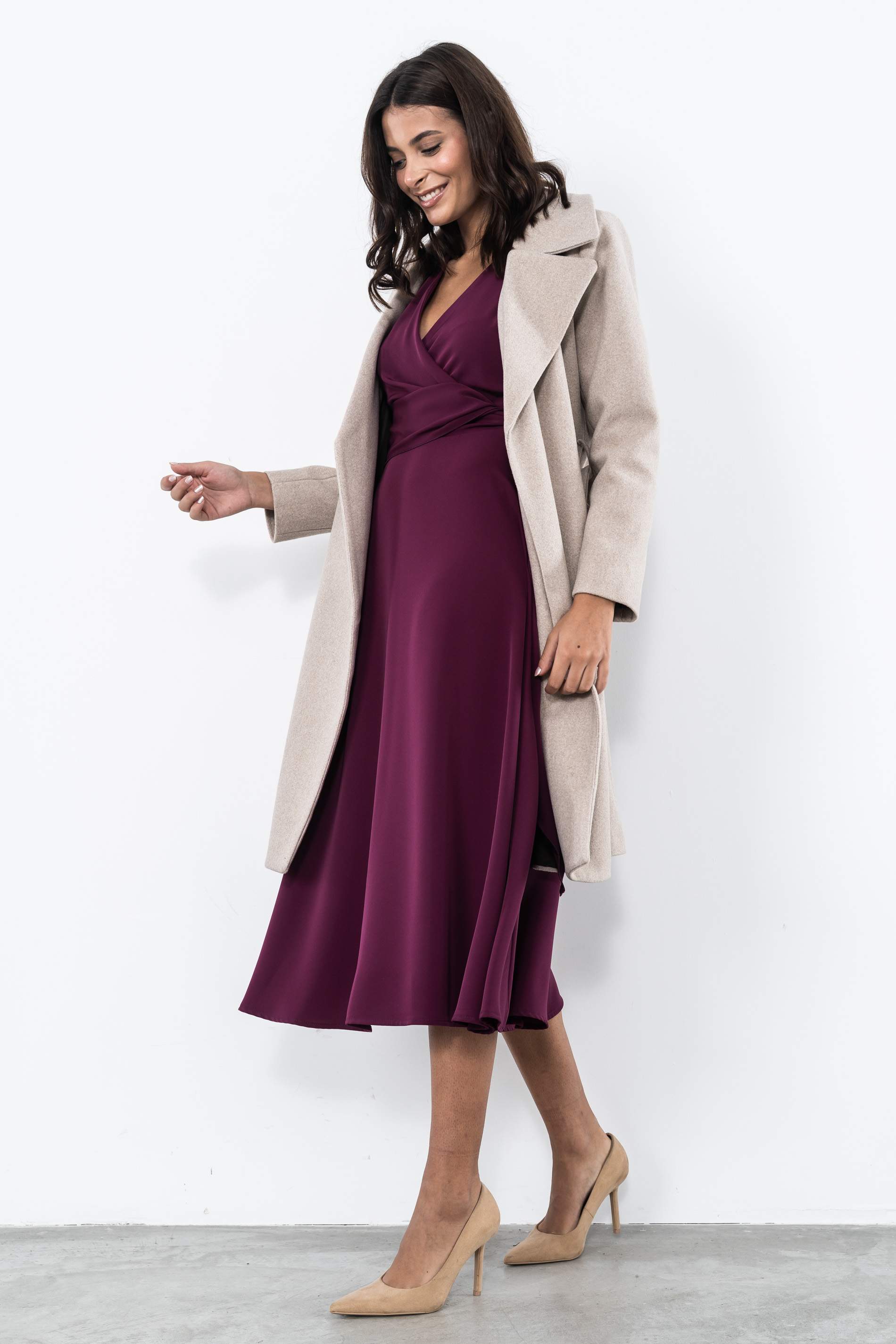 VESTIDO LAZO MANGA FRANCESA BERENJENA